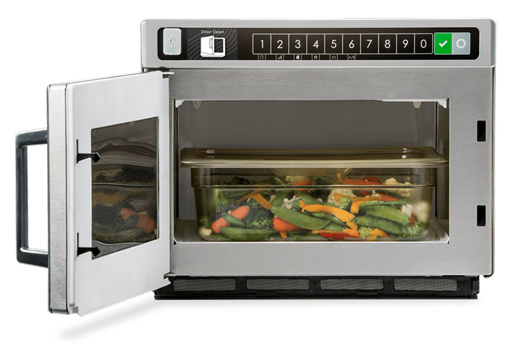 Le DEC18E2 est la référence absolue en matière de cuisson accélérée à haute puissance dans un encombrement réduit. Le panneau de commande monté sur le dessus est accessible, intelligent et facile à utiliser. Les antennes supérieure et inférieure assurent une couverture complète de la cavité pour des résultats de cuisson et de réchauffage uniformes et constants.